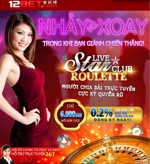 Kể từ ngày 26/3/2013, casino 12BET sẽ chính thức cung cấp dịch vụ chơi và truyền hình trực tuyến game roulette. Giờ đây người